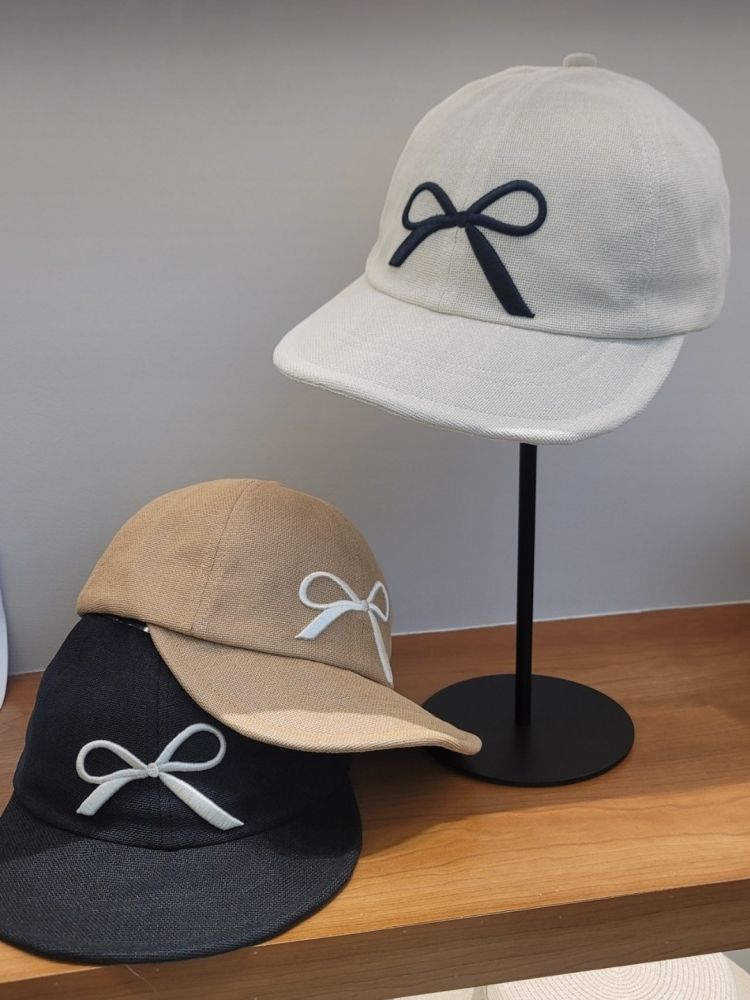 # 마 린넨 리본 볼캡 모자