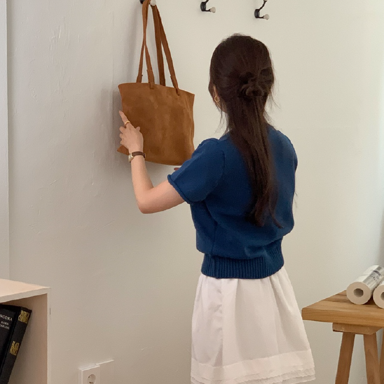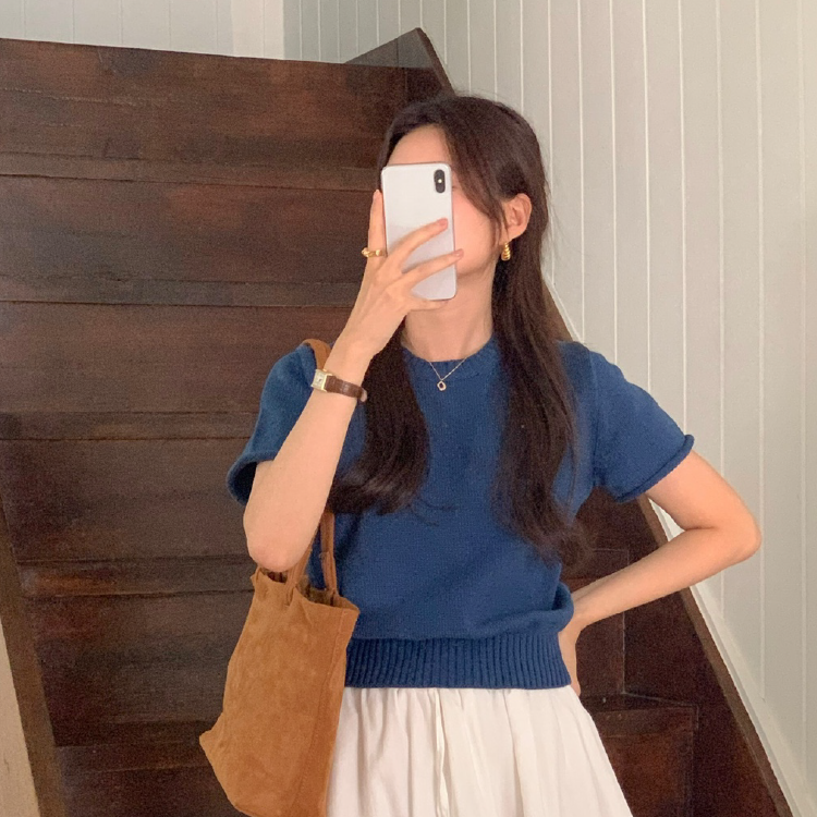 기본 니트 반팔 라운드넥_네이비
