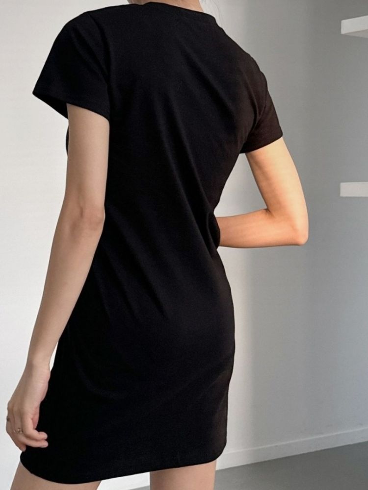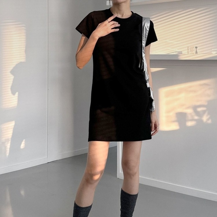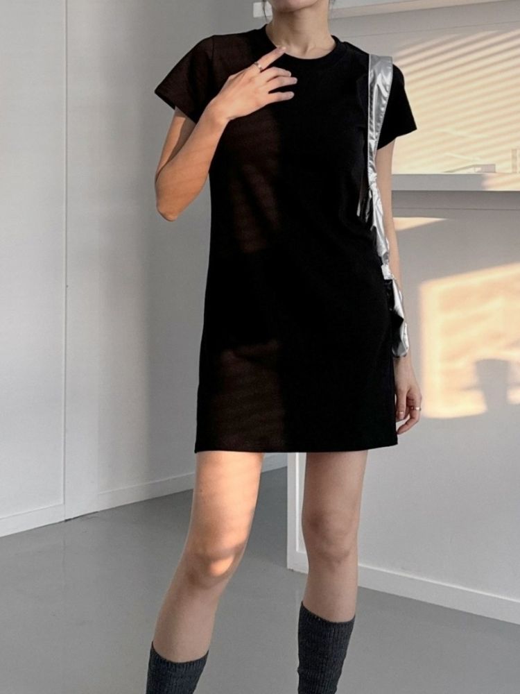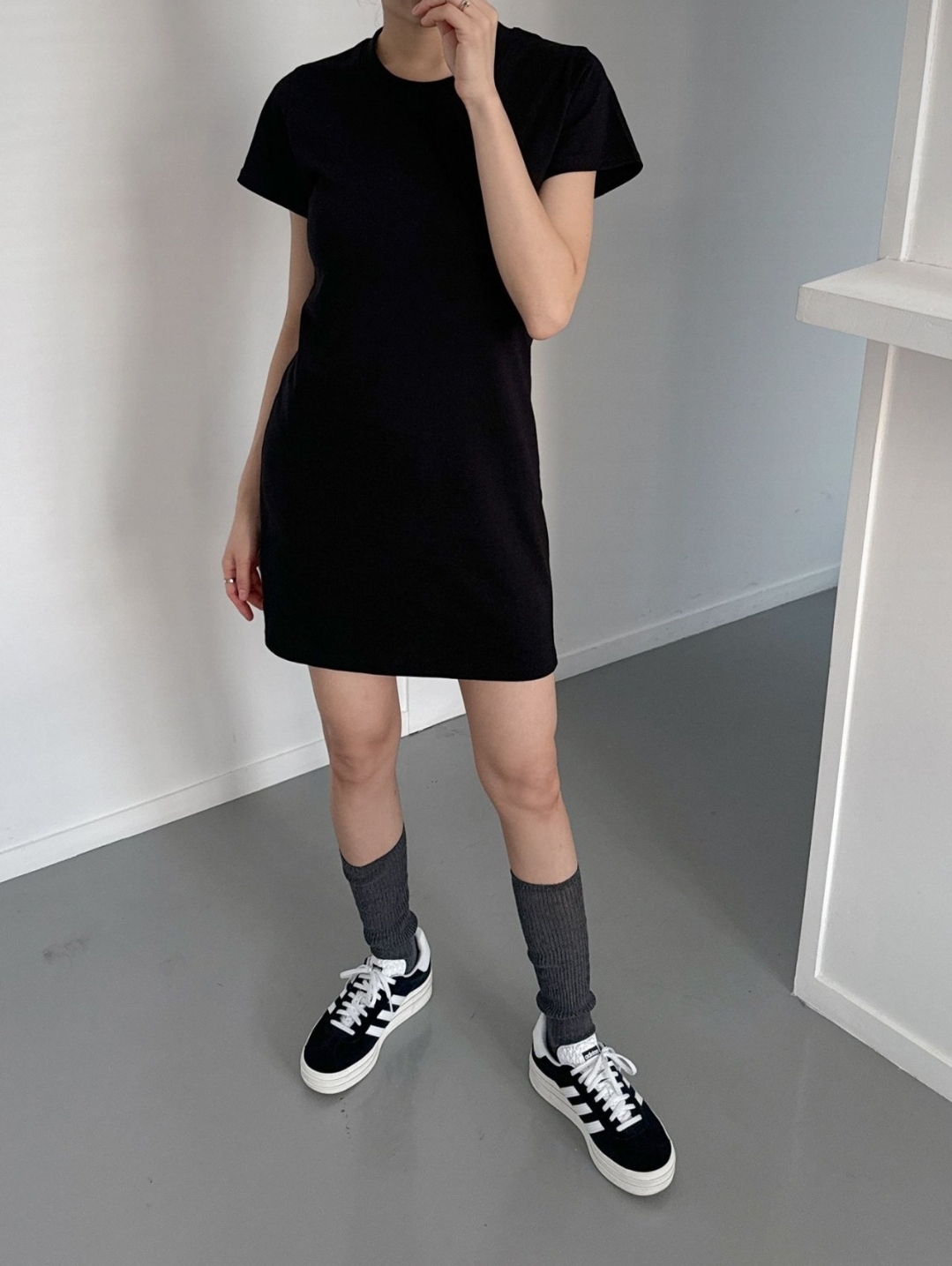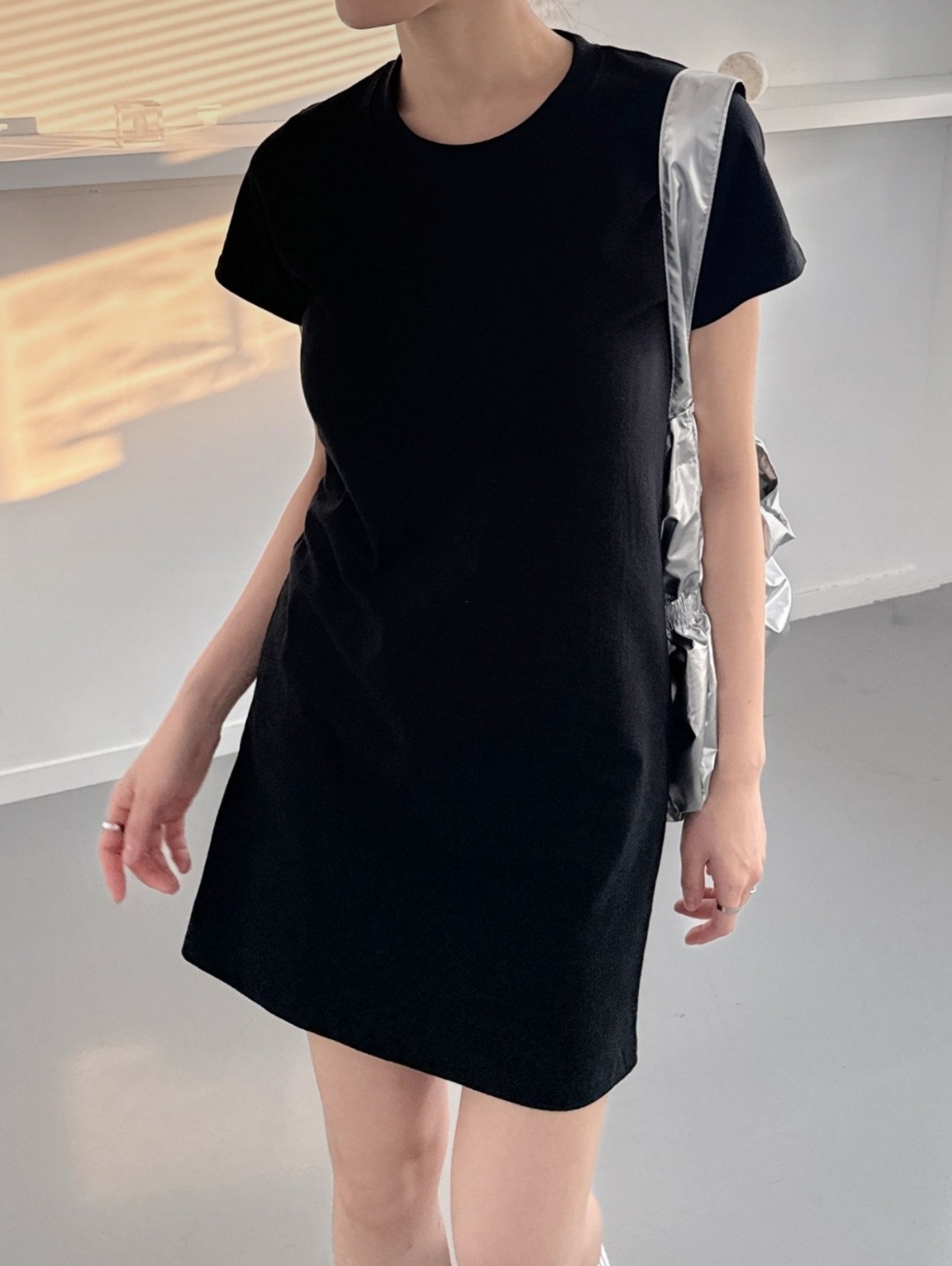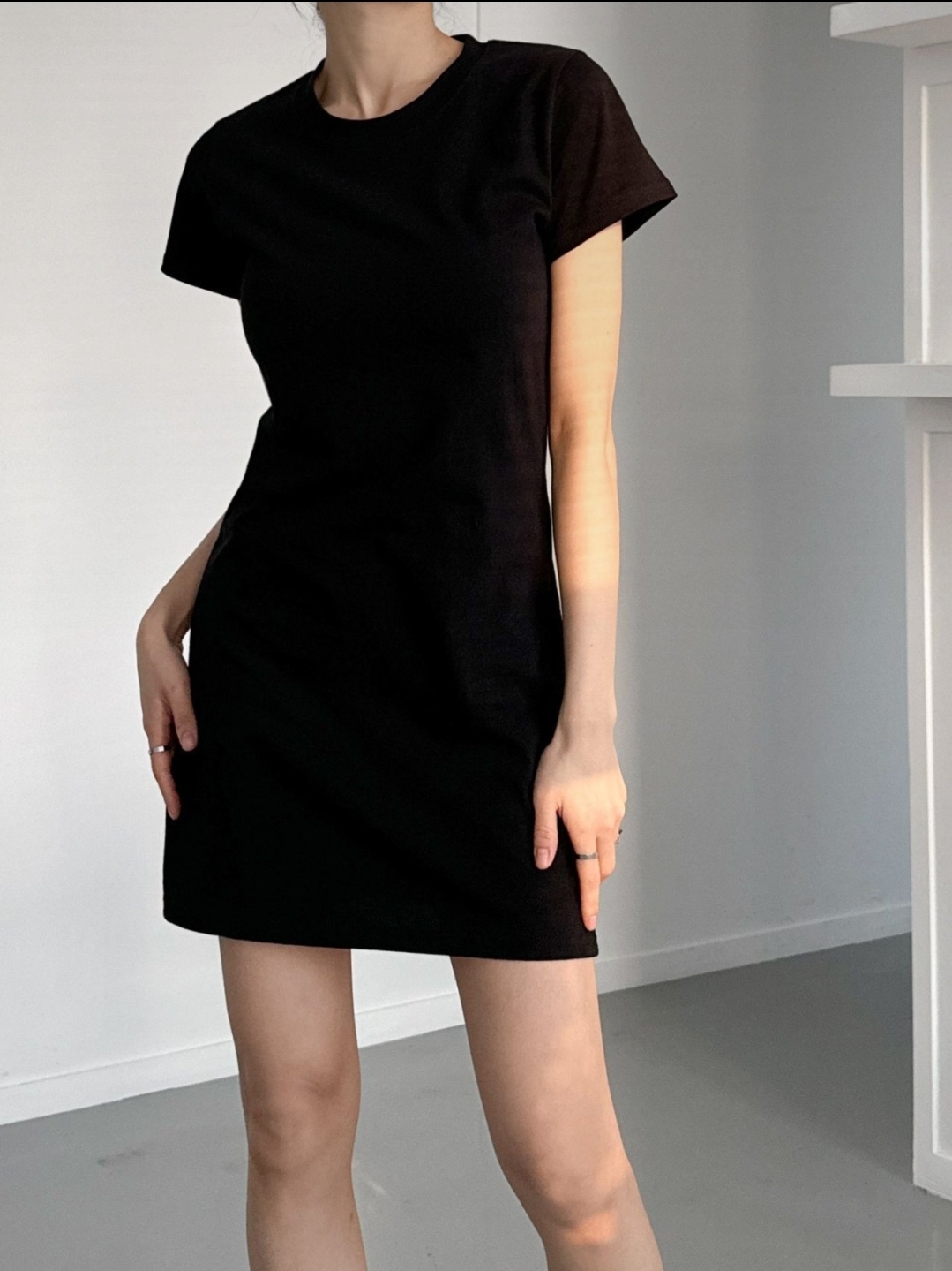 # 코튼 미니 반팔 원피스 면 라운드 이너 심플 봄 신상 사계절 기본핏