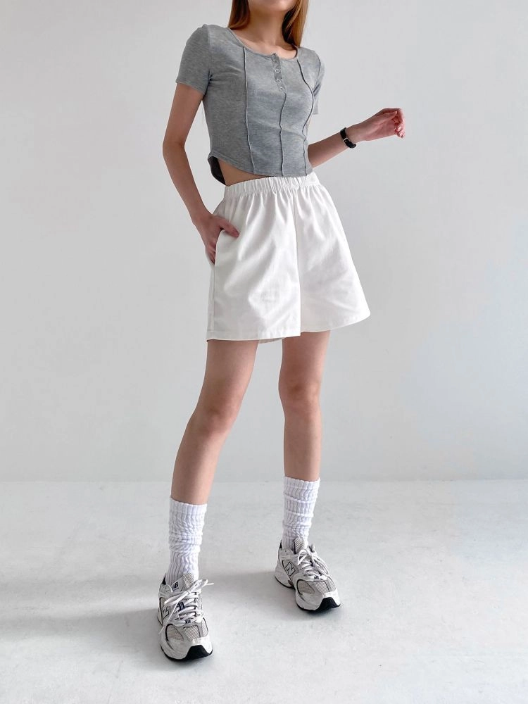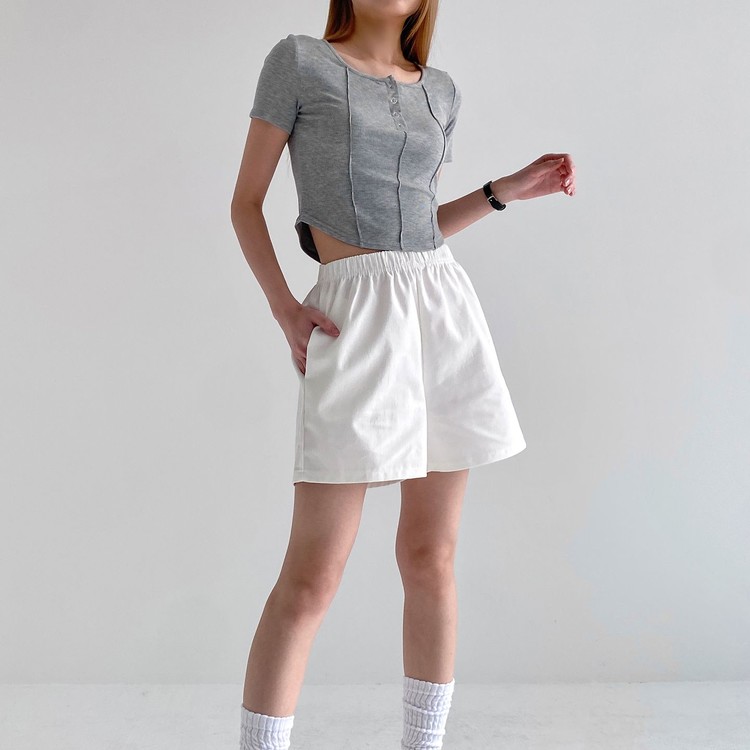 # 미니멀 코튼 미니 반바지 아이보리 블랙 블루 그린