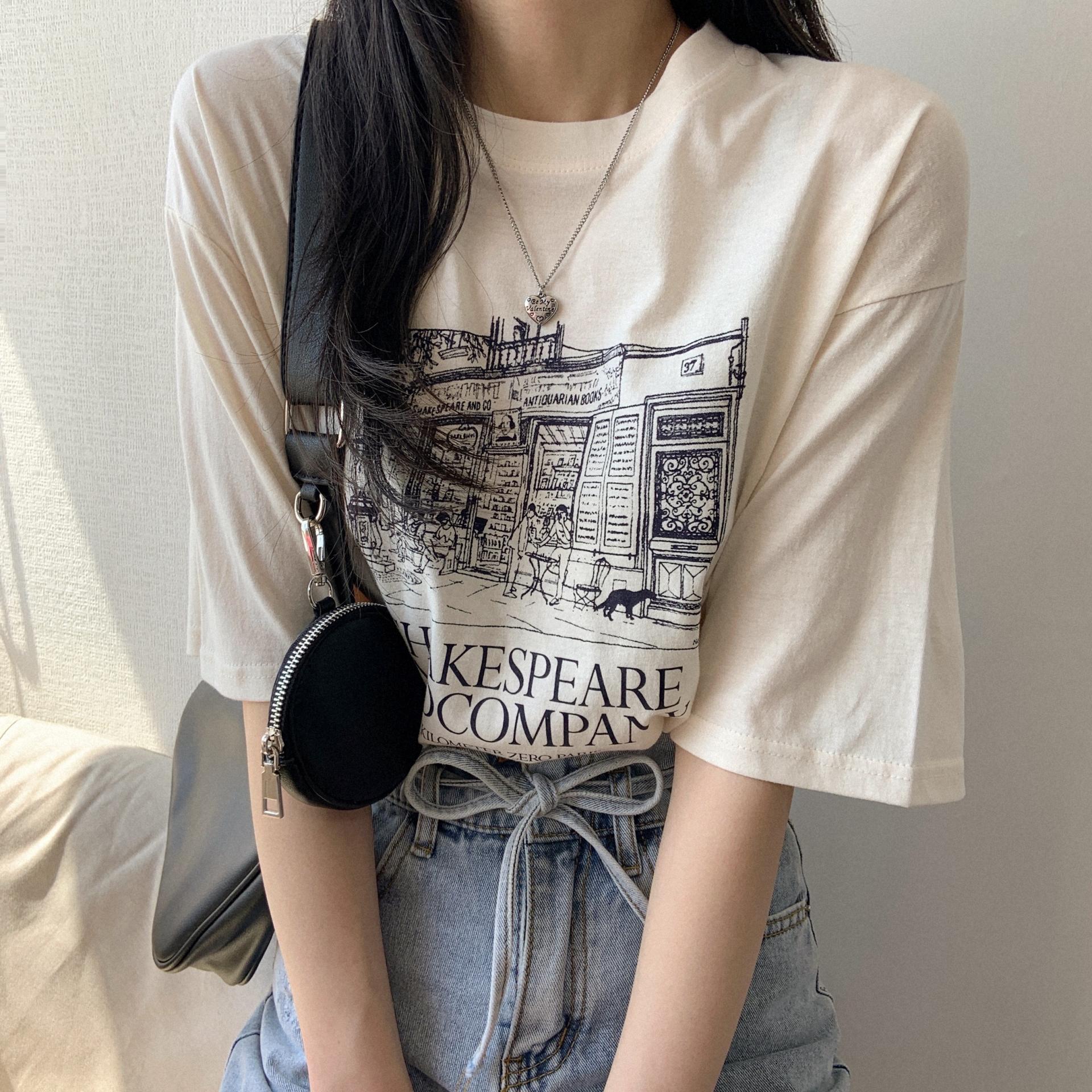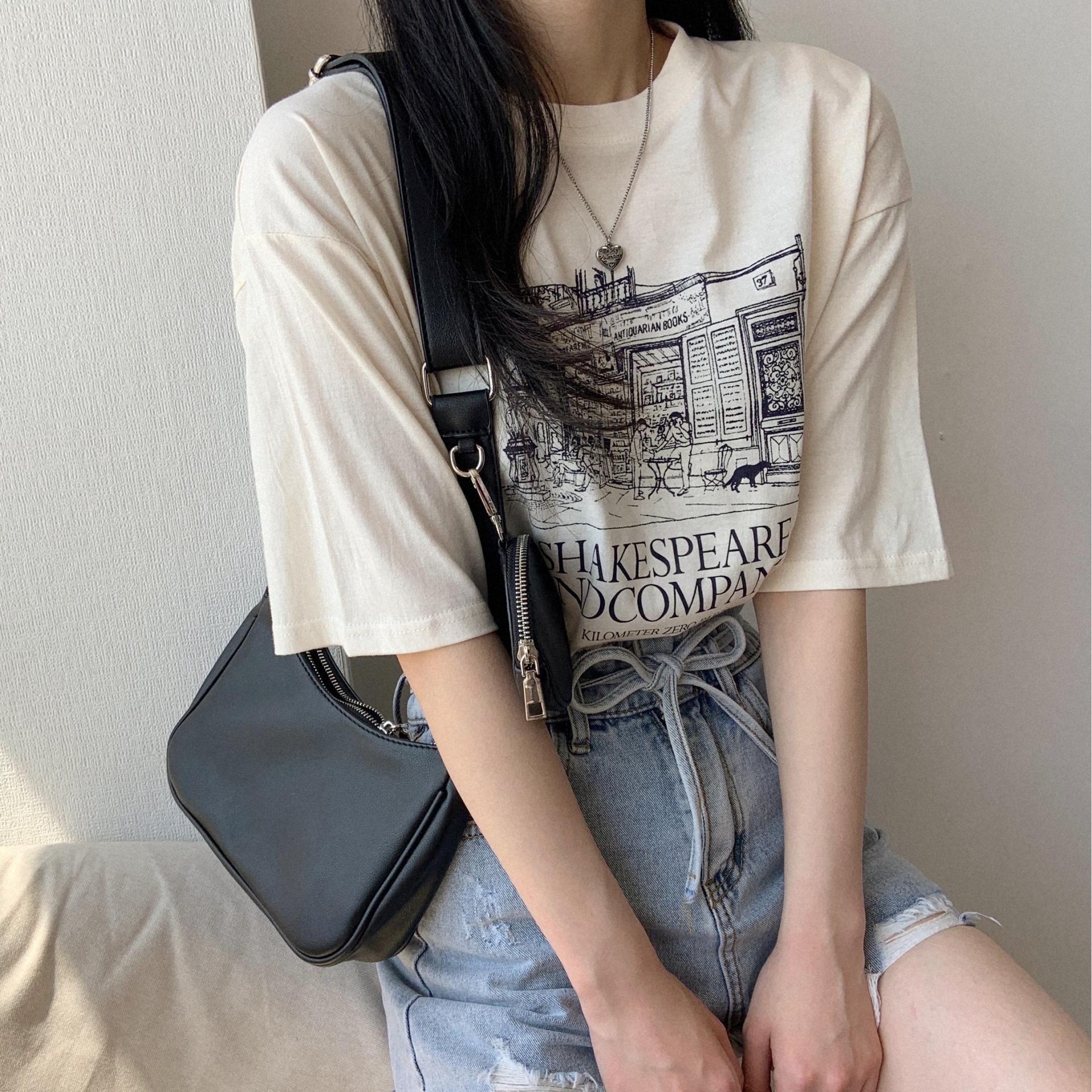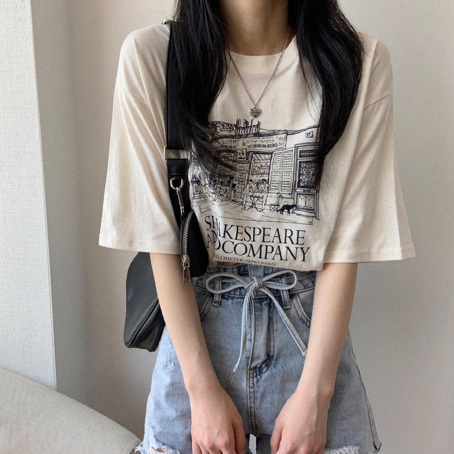 # 제로 기본 루즈핏 레터링 오버핏 반팔티 티셔츠 아이보리