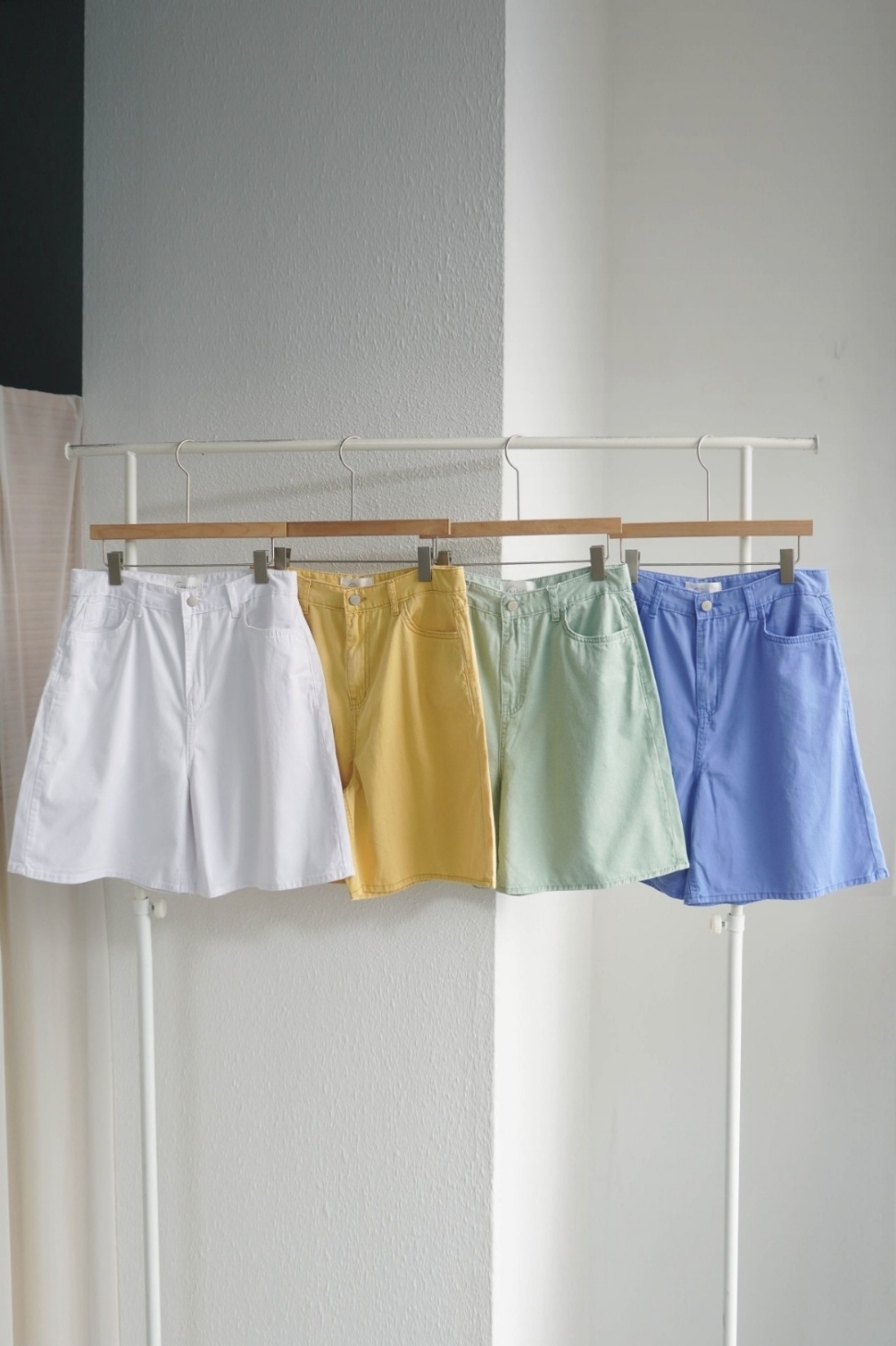 # 신상 칼라 면 반바지 화이트 엘로우 민트 블루