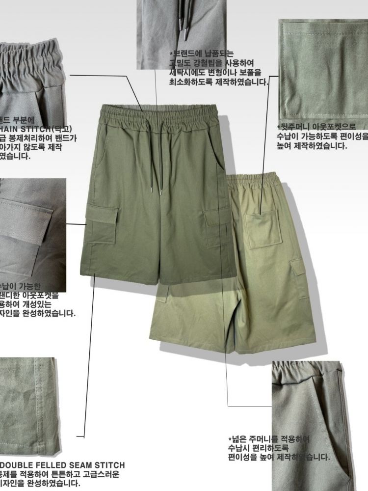 # 7부 버뮤다 카고 바지 봄 여름 신상 반바지 주머니 포켓 밴딩 빅사이즈