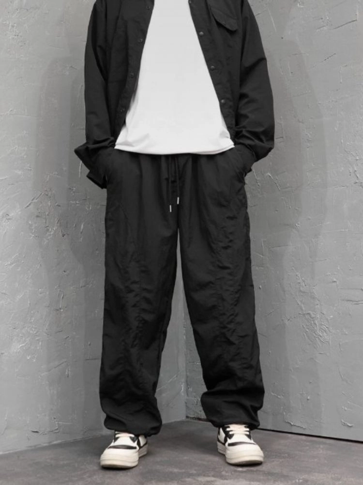 #신상 소프트 커브팬치 루즈핏 유니 디테일 어버핏 나일론 바지
