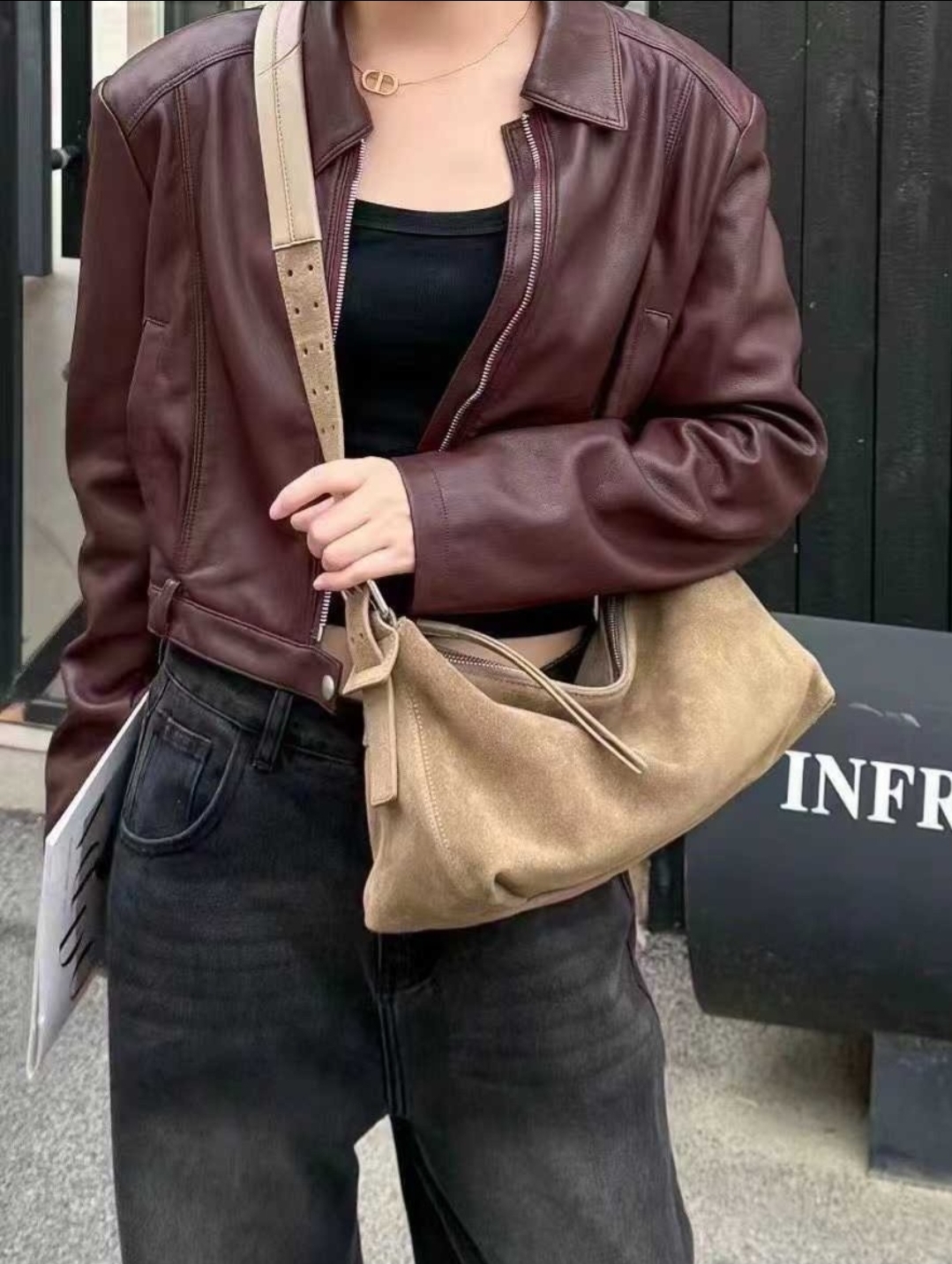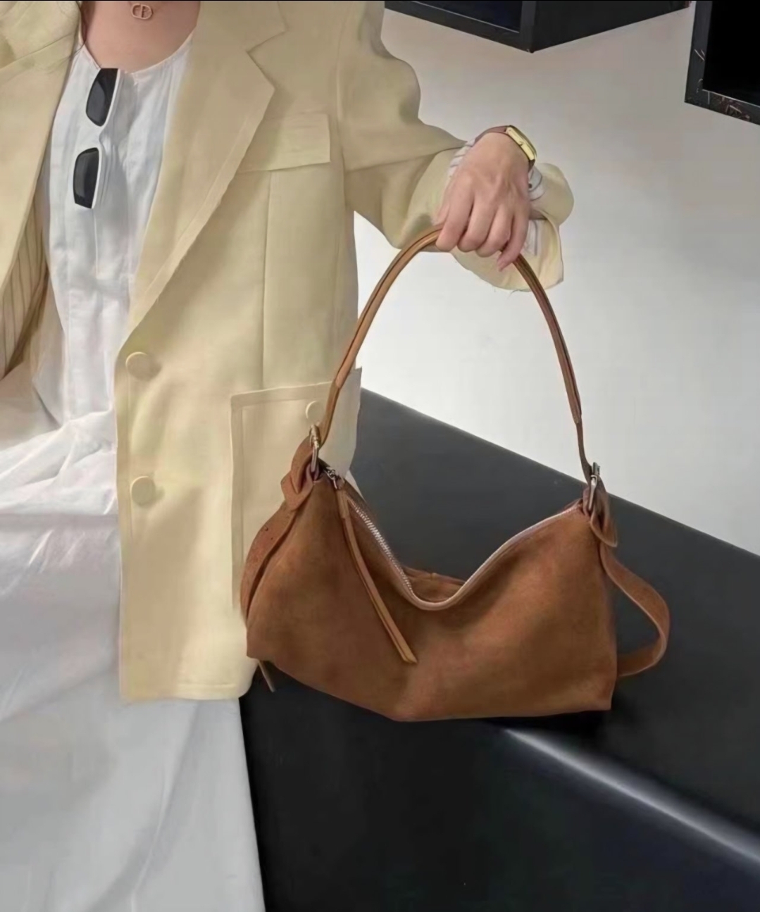 # 소가죽 가죽 메르 벨티드 바게트백핸드백 신상 가방