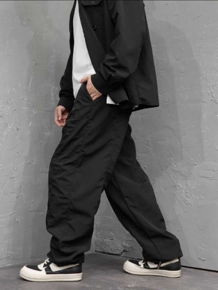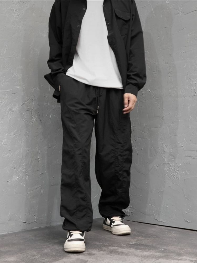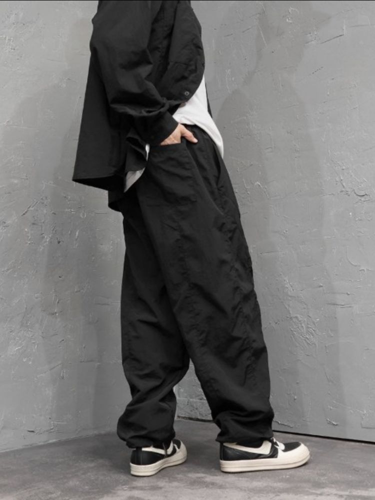 #신상 소프트 커브팬치 루즈핏 유니 디테일 어버핏 나일론 바지